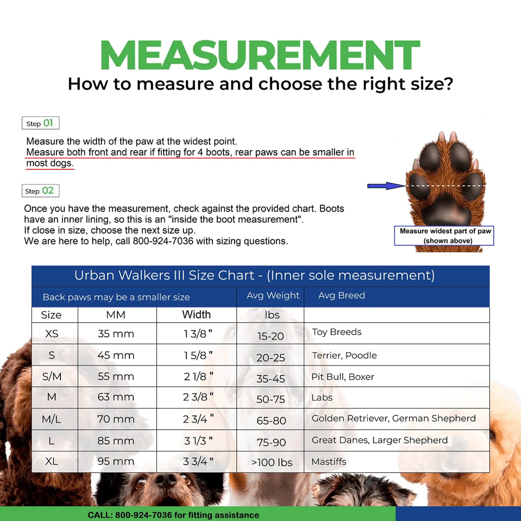 Urban Walkers lII are offered in seven sizes to fit most breeds.