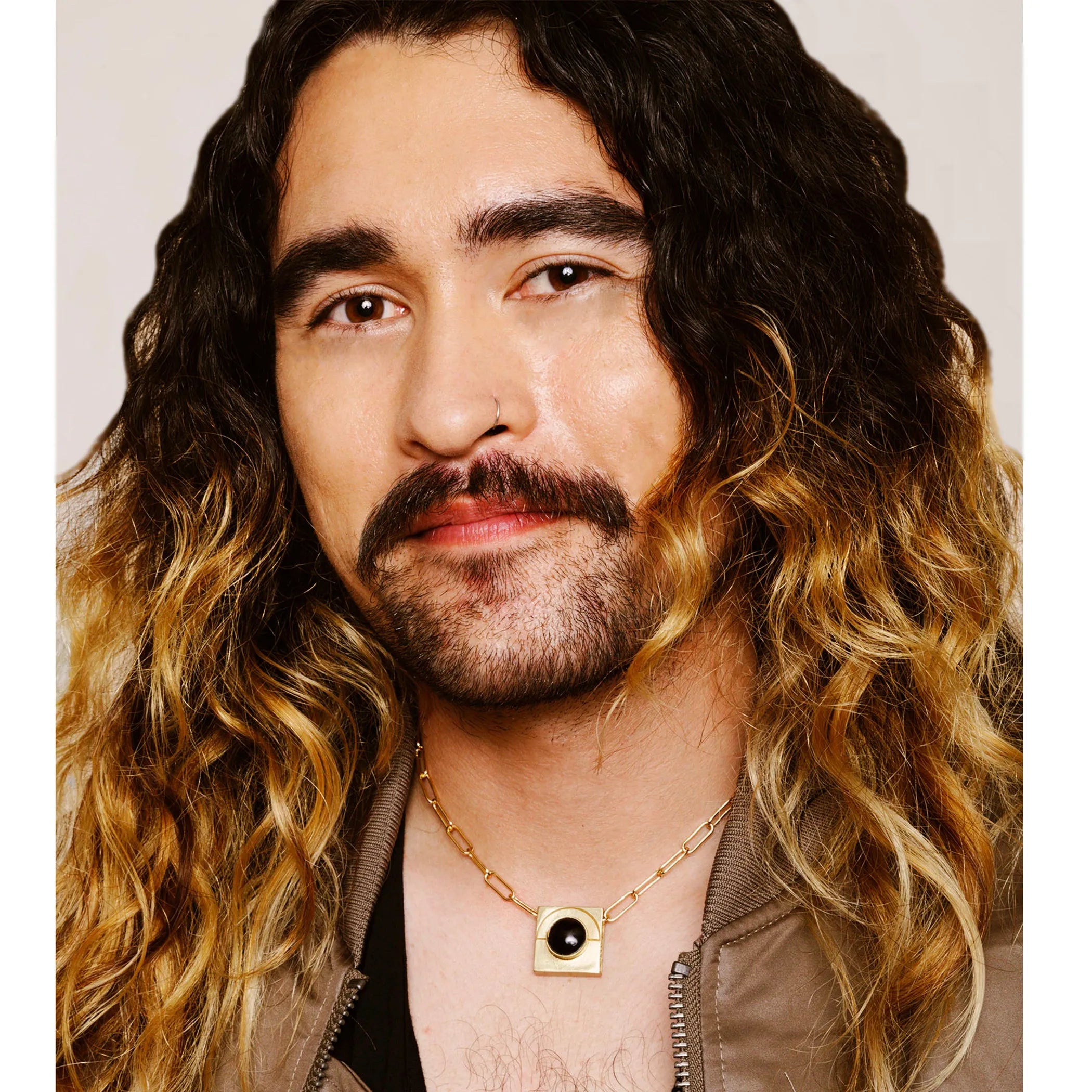 The DIPHDA Infinity Moon Necklace. Our Infinity Chain is paired with a medium Crystal Moon Slider Charm and an eye-catching toggle clasp.