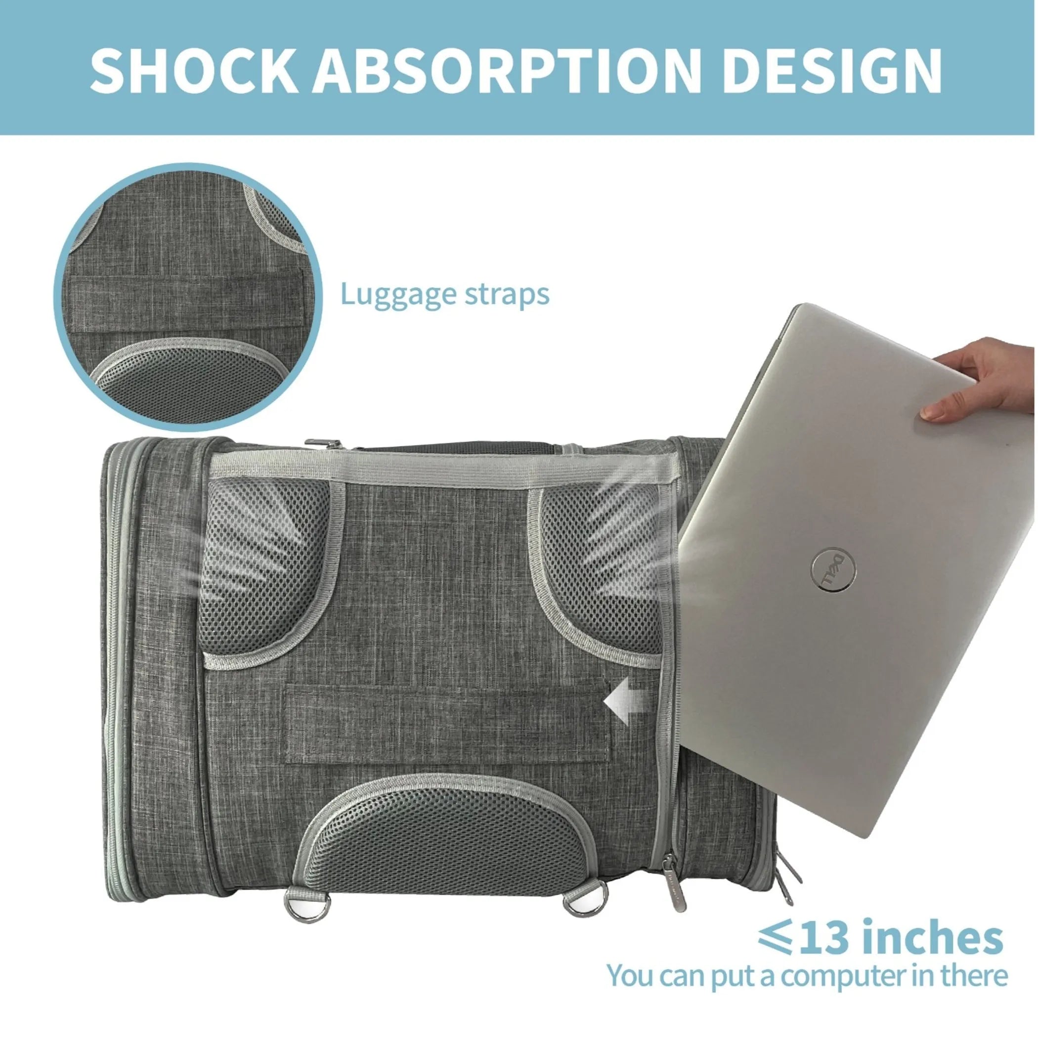 Excellent for in-cabin airline use, designed to lay on its 10 padded side for pet comfort and ease of under seat compatibility